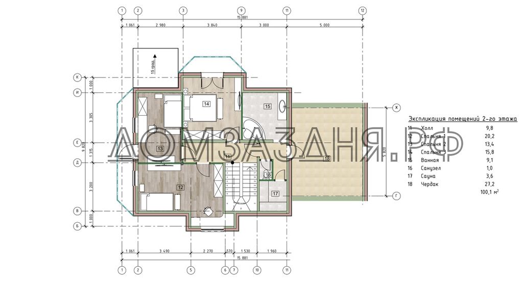 | ПОТОЛОК | Потолок подшит деревянной вагонкой 1 сорта шириной 90мм или 135мм, OSB-3 толщиной 9,5мм или гипсокартоном 9мм в два слоя. Утепление 150мм. Лаги — сухая строганная доска 50х200мм с шагом 600мм. |
