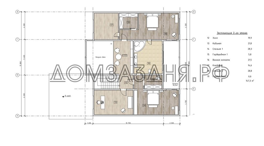 Строение имеет многоугольную форму с размерами в осях 15,800 х 14,450 м.