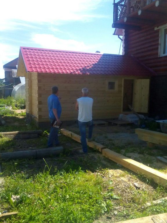 | фундамент | Под парной — ленточный 400х200мм, выполнена цементно-песчаная стяжка с уклоном в сторону приямка, с организацией фундамента под печку. По периметру — столбчатый бетонный с шагом не более 3000 мм. Размер бетонных столбиков 200х200х400 мм. По фундаменту укладывается рубероид в два слоя. |