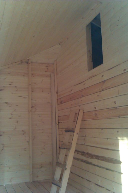 | Перекрытие из пиломатериала сечением 50х150мм с шагом не более 600мм. Обшивка евровагонкой толщиной 16мм. | |