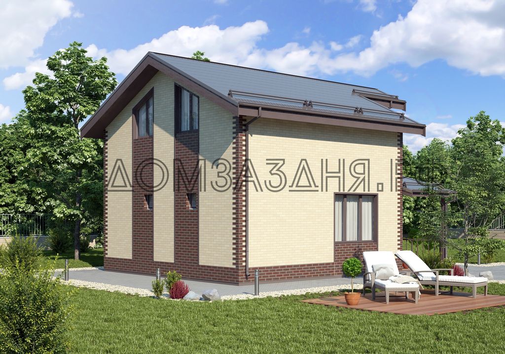 Двухэтажный дачный коттедж, подходит для круглогодичного проживания. Его планировка отвечает всем требованиям комфорта. При необходимости, в типовой проект вносятся любые изменения и дополнения. Срок возведения не превышает 30 дней.