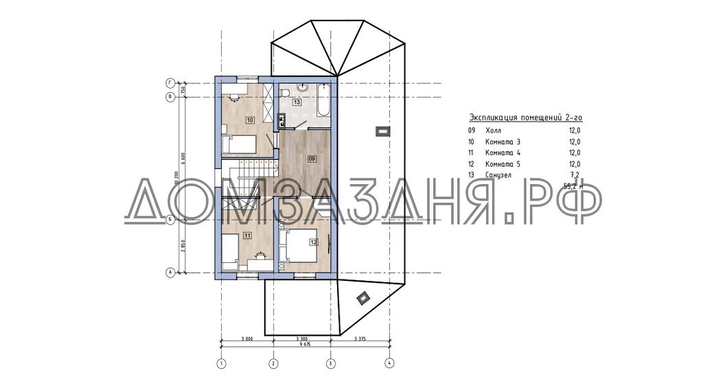 На втором этаже 3 спальни и просторный санузел, объединяет эти помещения большой холл.