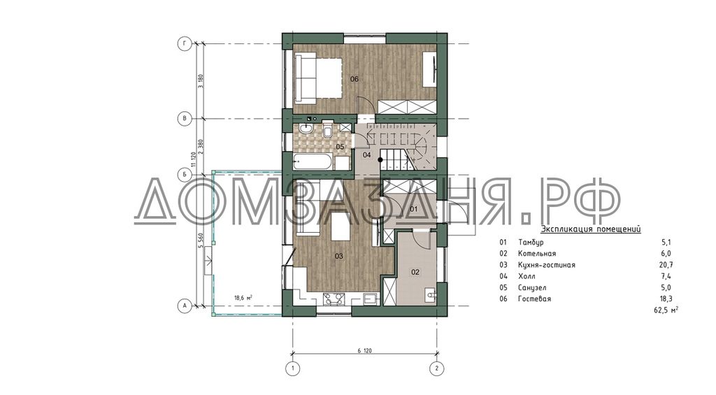 | ФУНДАМЕНТ | Буронабивные сваи, ленточный мелкозаглубленный или свайно-винтовой. Гидроизоляция по верху фундамента рубероид. |